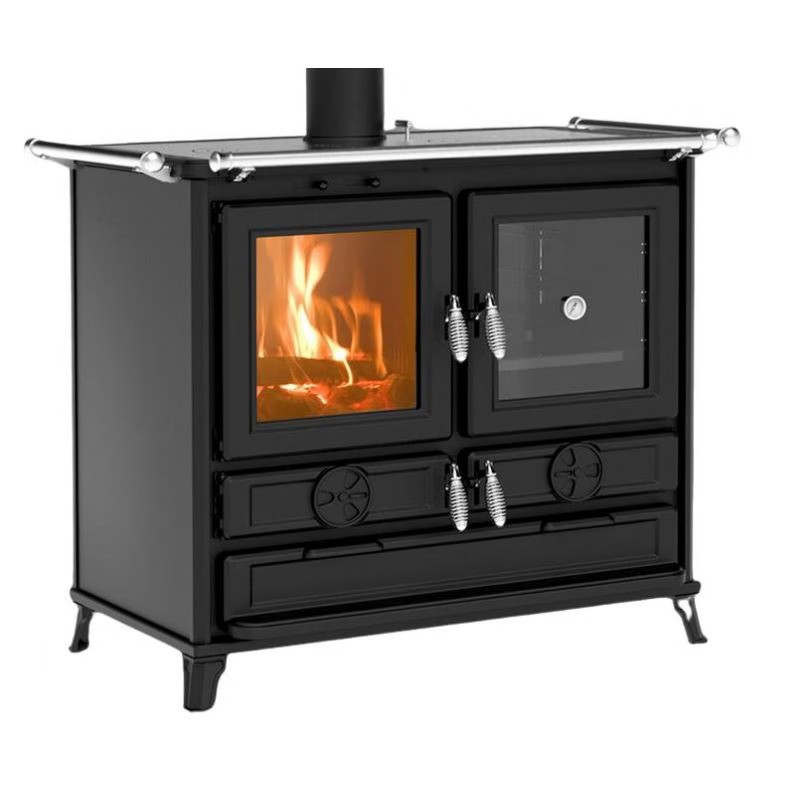 Il Klara Evo dispone inoltre di vano portasciuga, cassetto cenere, vano portalegna, vetro ceramico resistente fino a 750°C e una struttura robusta che assicura lunga durata e un’estetica rustico-moderna adatta a cucine contemporanee o tradizionali.
